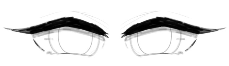 The drawing, one key area to focus on is below the top line of the eye's base shape, .